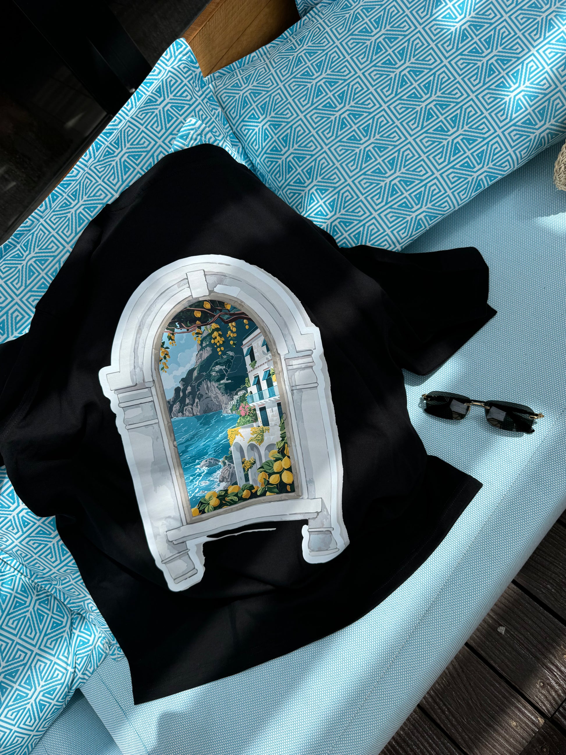 Тази тениска съчетава арт визия и свежо настроение – с морски бриз и мечти за Италия.